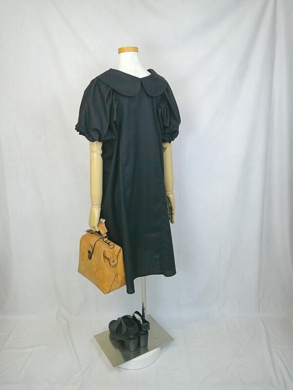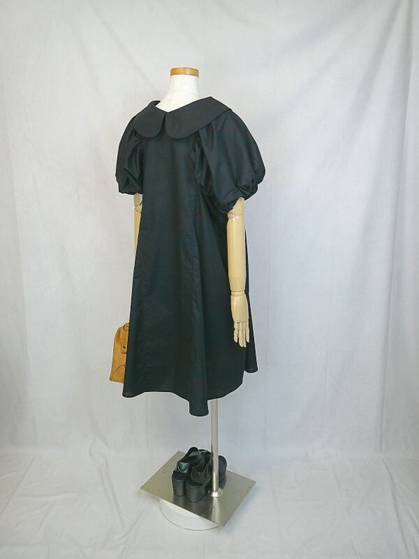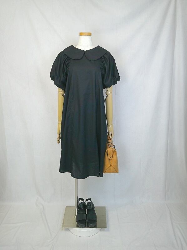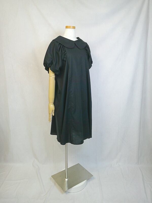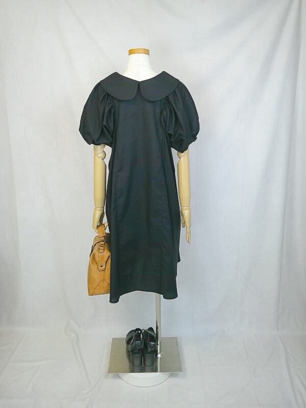 丸襟ワンピース 【LBD00000097】 ★丸襟リトルブラックドレス★ 手作り 一点物 快適 通勤 通学 ビジネス 締め付けない 国産 日本製 半袖 コットン100%