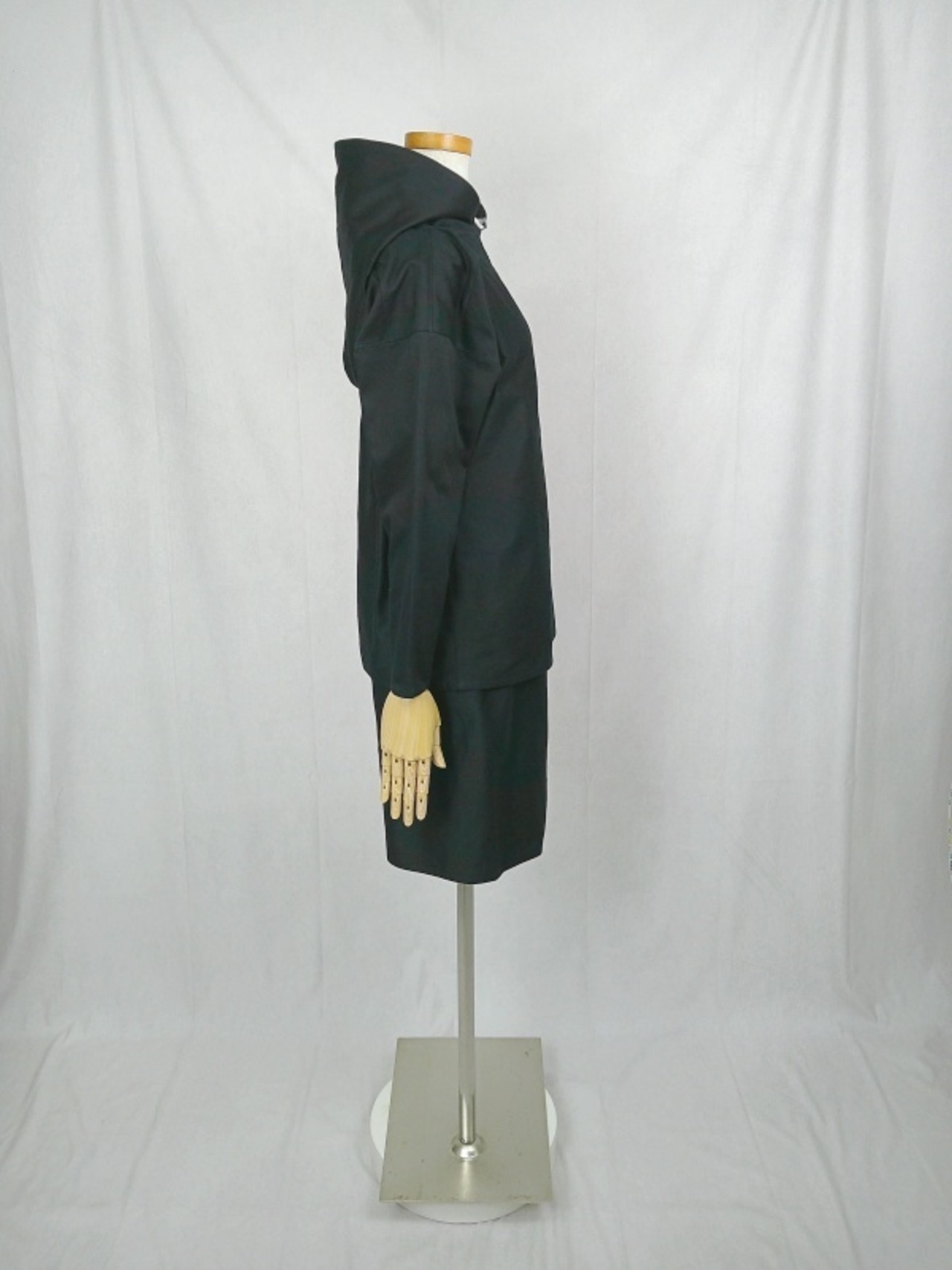 カジュアルになりがちなフード付きのお洋服を、国産のコットン100%の生地を用い、可愛く、エレガントに仕上げた、フード襟のワンピースでございます。