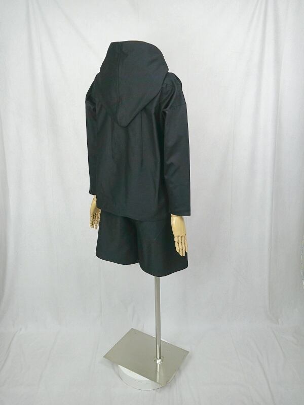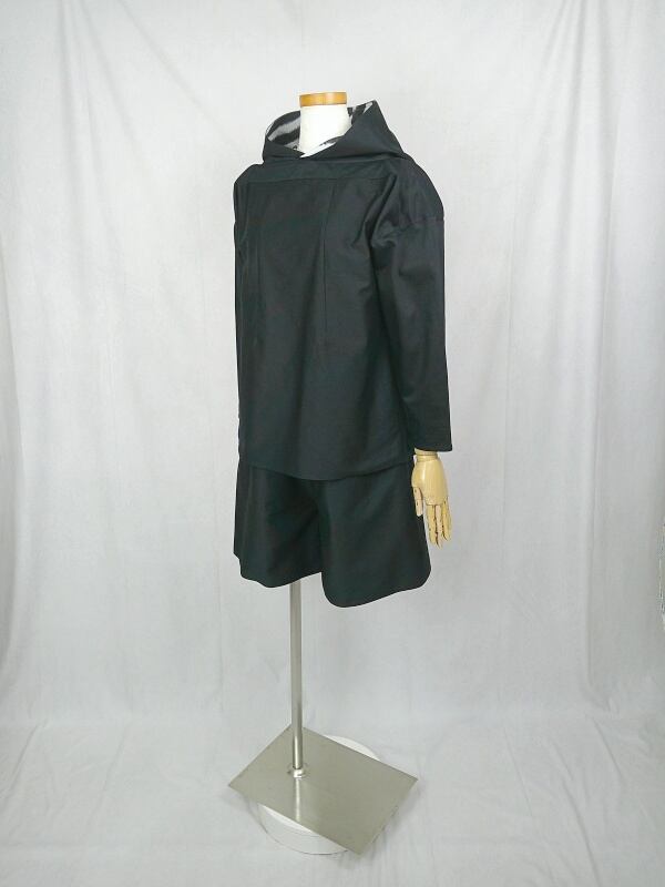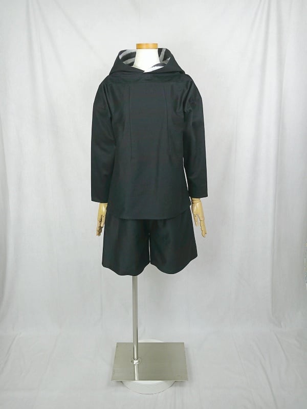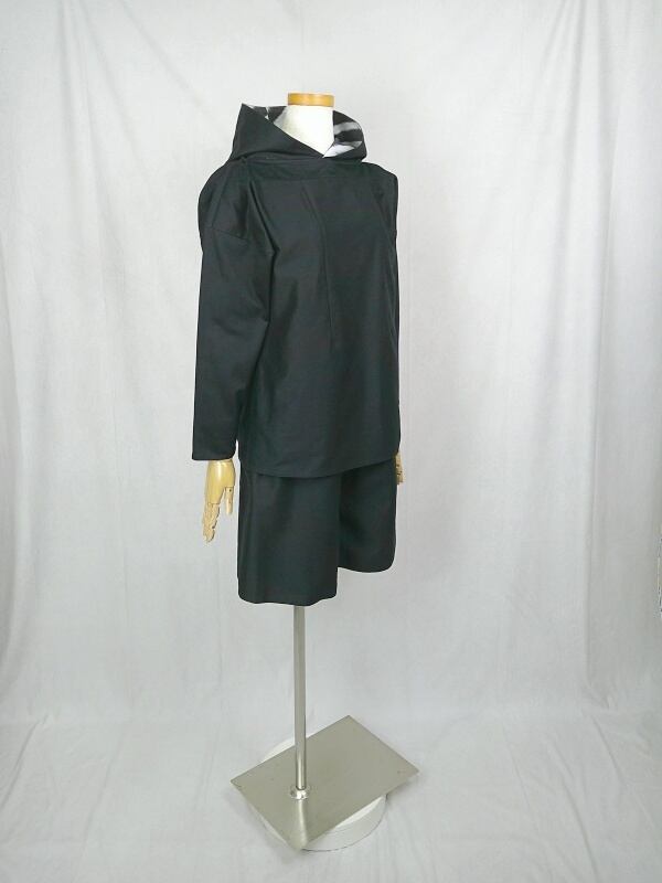 フードツーピース 【hdd00000045】★すっきり袖&ドロップショルダーブラウスと膝丈パンツが、かわいらしさを演出する、内側のゼブラ柄がオシャレな、黒色のフードツーピース★ 手作り 一点物 快適 通勤 通学 ビジネス 締め付けない 国産 日本製 コットン100% パーカー