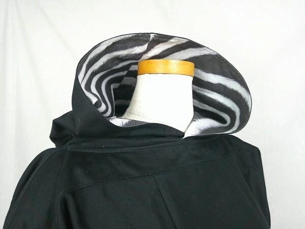黒一色の素材に、ゼブラ柄を用いたフード内側のオシャレ感がエレガントな、高級感あふれるスタイルは、色々なシーンで注目を浴びそうです。