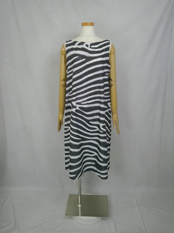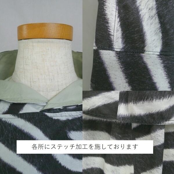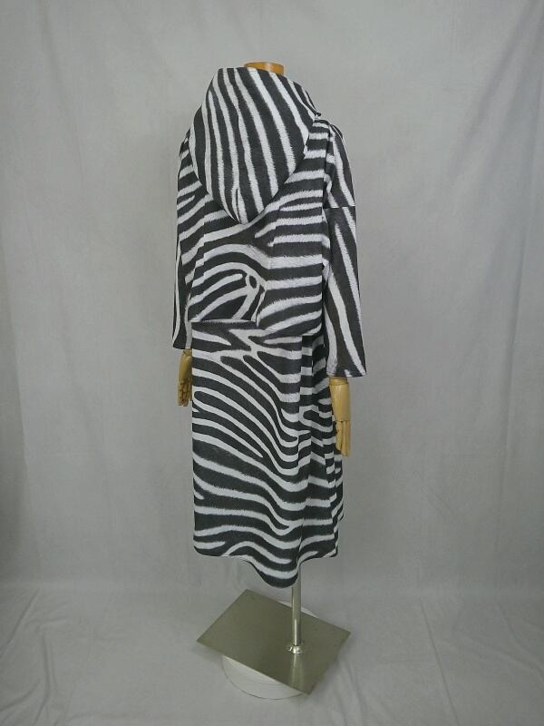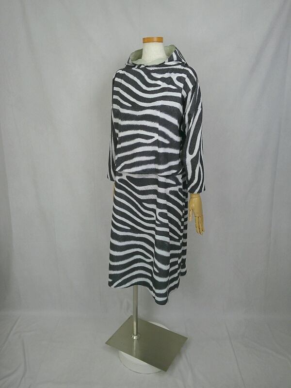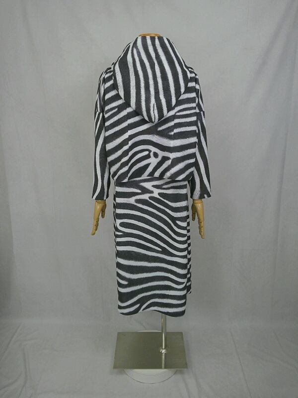 フードワンピース 【hdd00000048】★ゼブラ柄&すっきりシルエットが、高級感のあるエレガントな雰囲気を魅せる、ショート丈フードブラウスとミディ丈インナーワンピースのセットアップ★ 手作り 一点物 快適 通勤 通学 ビジネス 締め付けない 国産 日本製 コットン100% パーカー