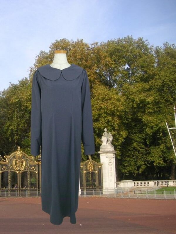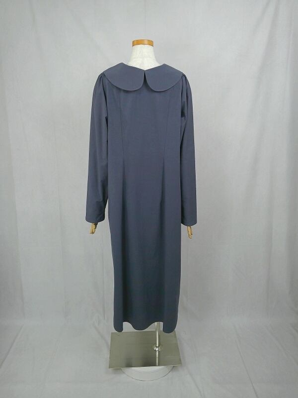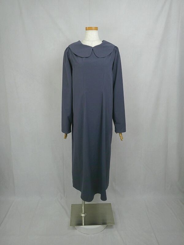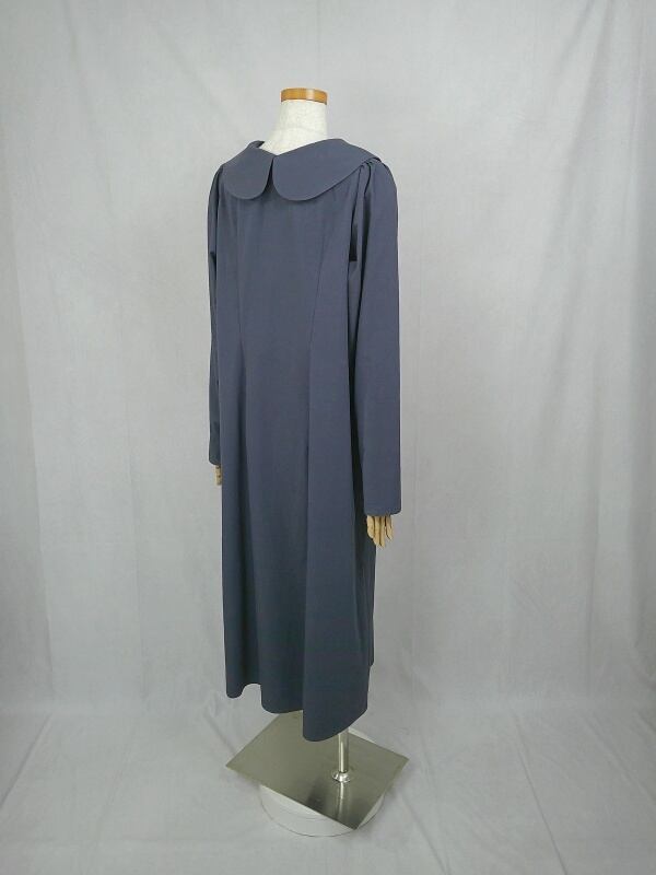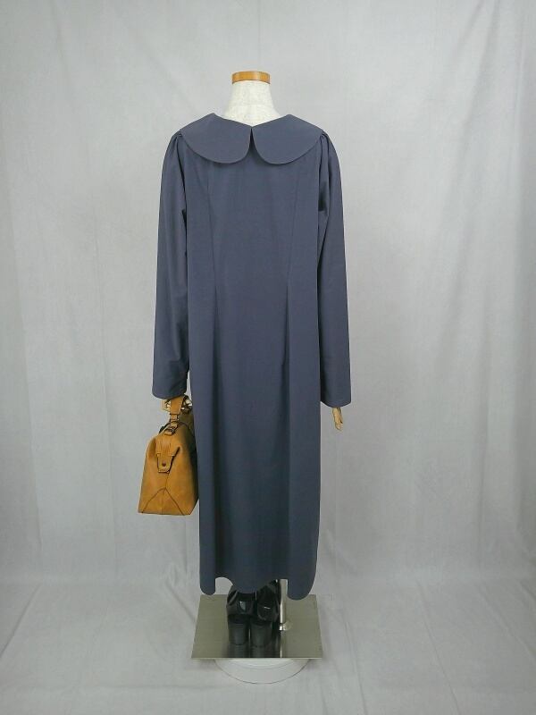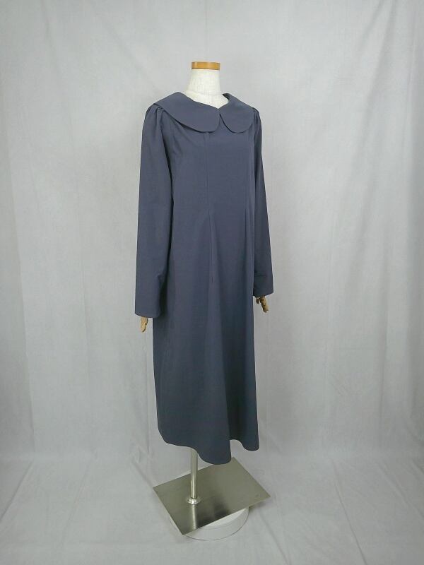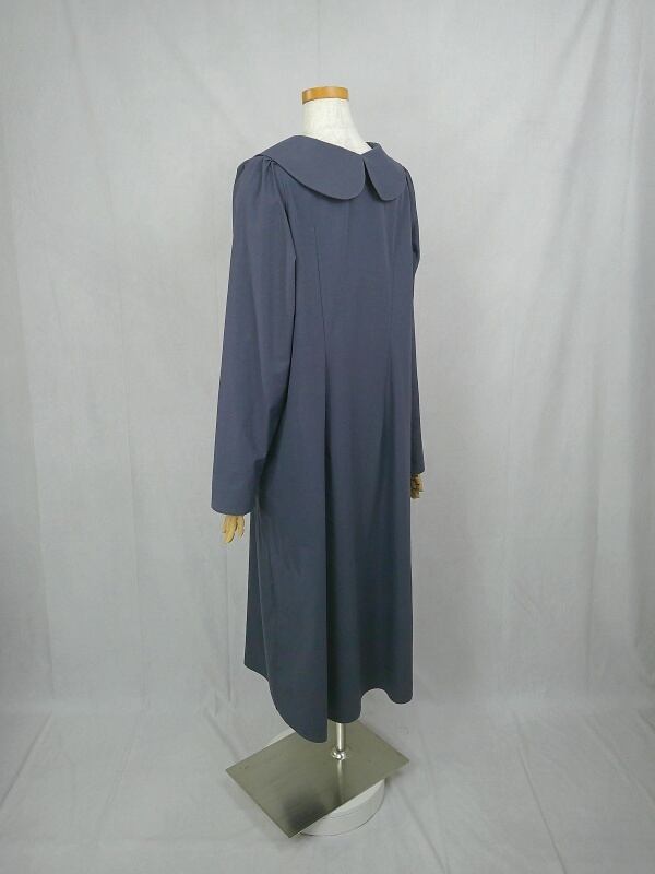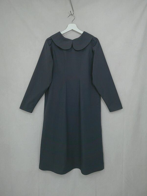 丸襟ワンピース 【ALP00000010】 ★プリンセスライン&ロング丈がエレガントな雰囲気を演出する、落ち着いたチャコールグレーの上品な丸襟ワンピース★ 手作り 一点物 快適 通勤 通学 ビジネス 締め付けない 国産 日本製 ロング丈 オールシーズン コットン100%