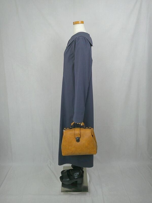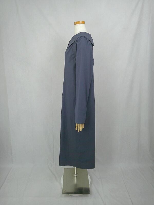 上質でハリのあるウェザークロス生地で作りました、丸襟ワンピースでございます。
