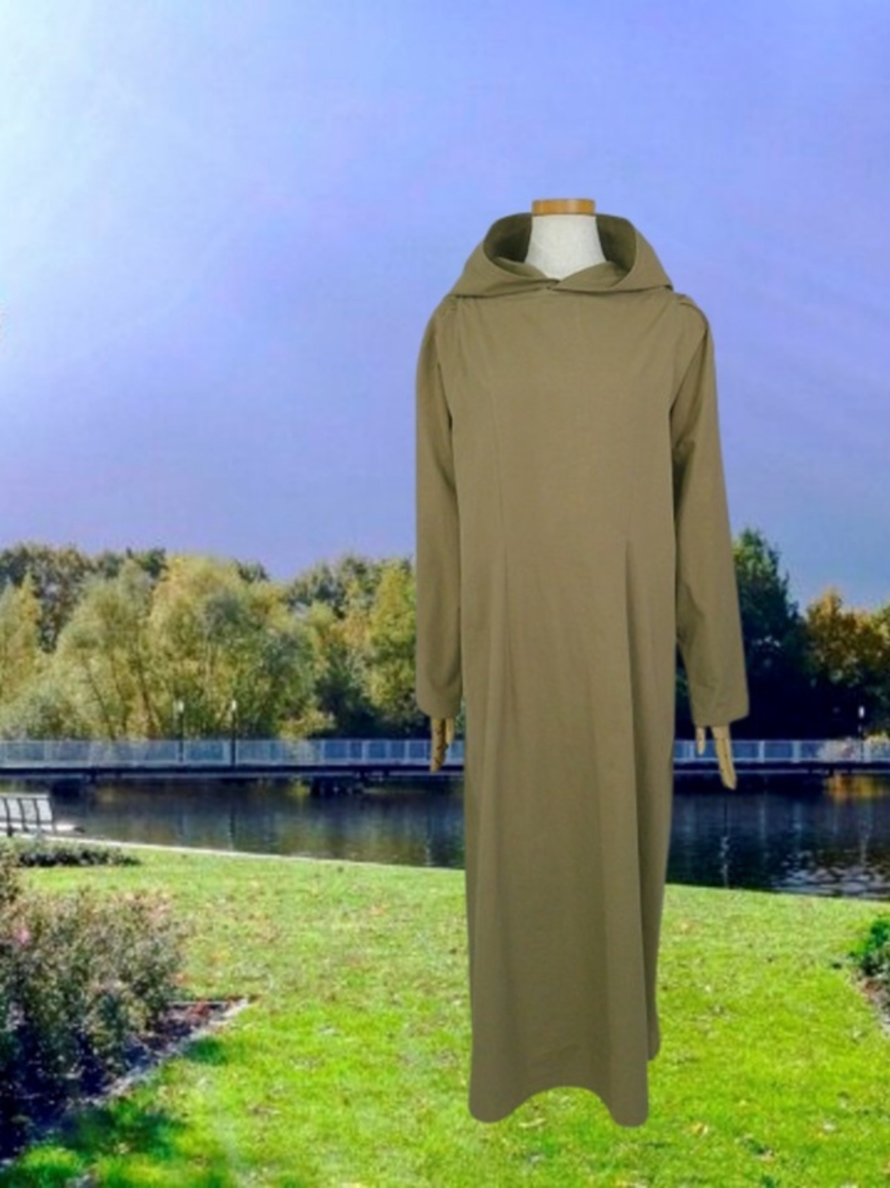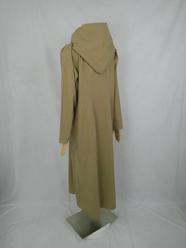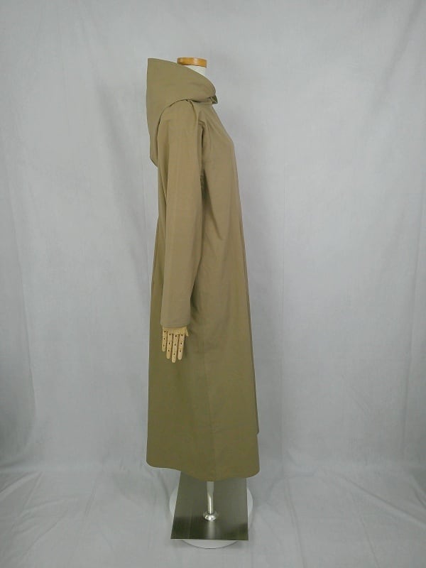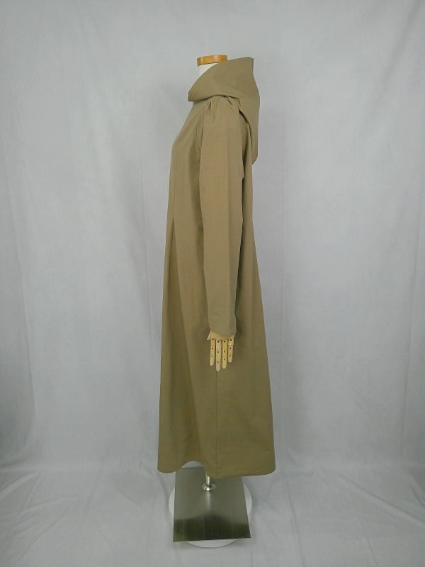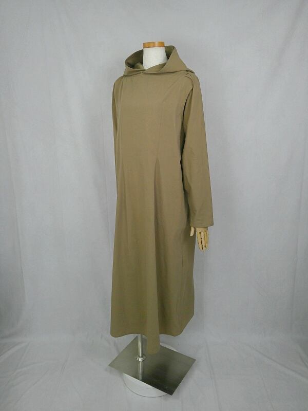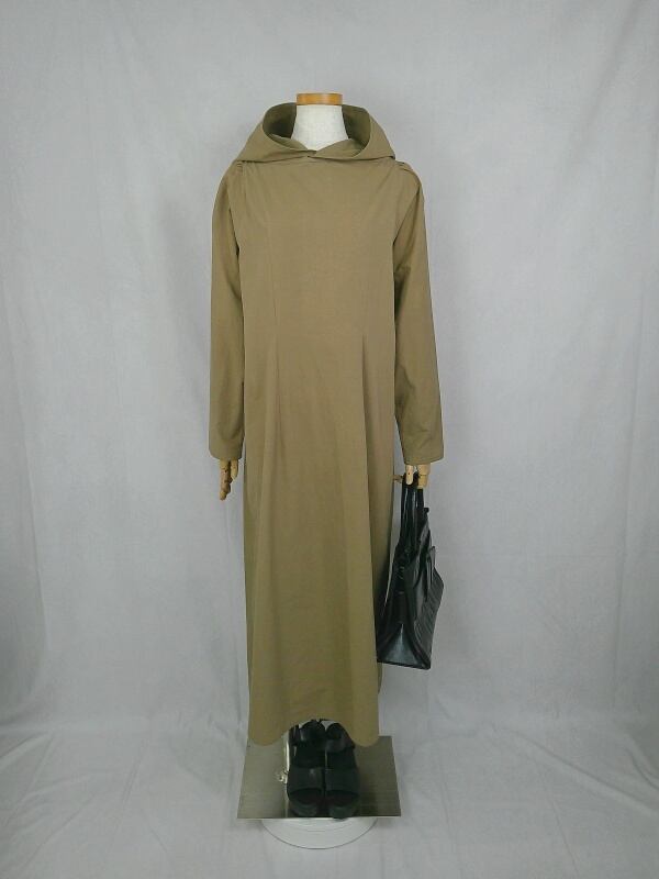 フードワンピース 【hdd00000049】★すっきりシルエットが上品な大人を演出する、ハリのある素材にカーキベージュ色がオシャレなロング丈フードワンピース★ 手作り 一点物 快適 通勤 通学 ビジネス 締め付けない 国産 日本製 コットン100% パーカー
