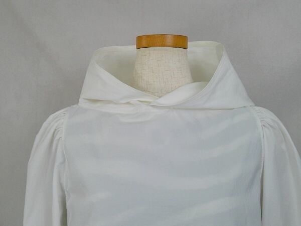 カジュアルになりがちなフード付きのお洋服を、国産のコットン100%の生地を用い、可愛く、エレガントに仕上げた、フード襟のワンピースでございます。