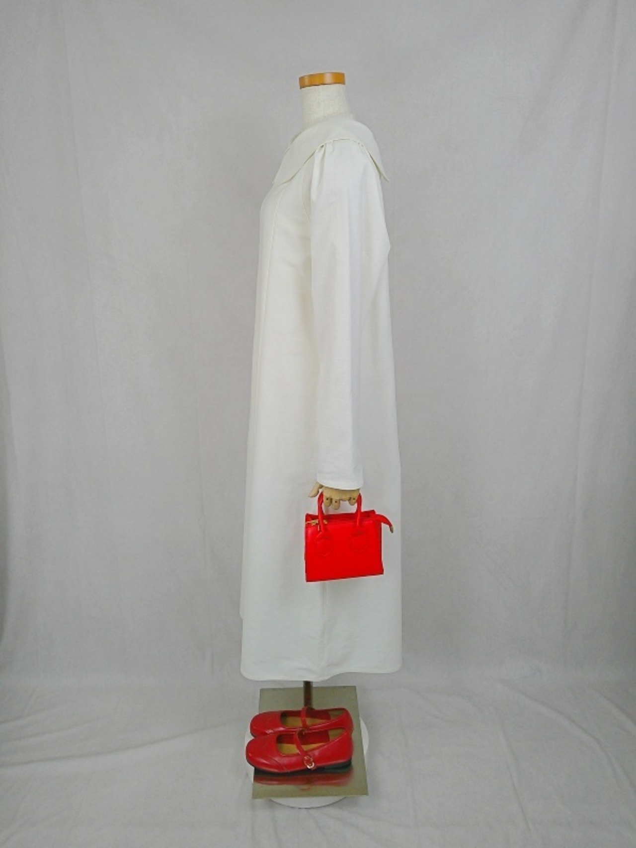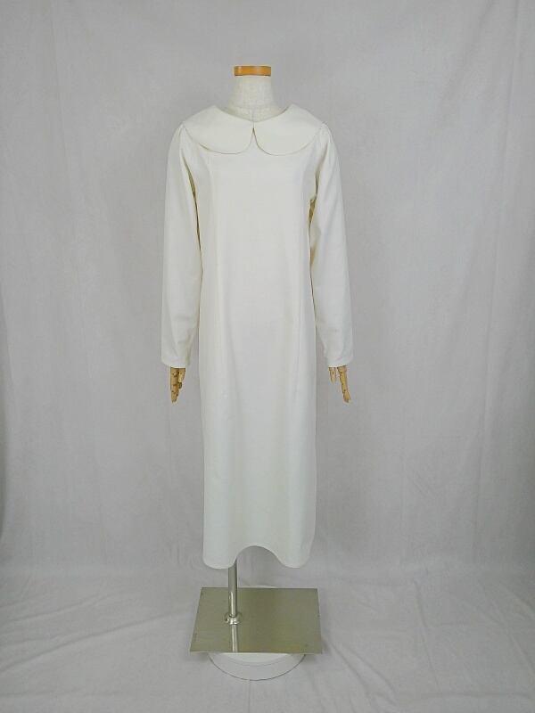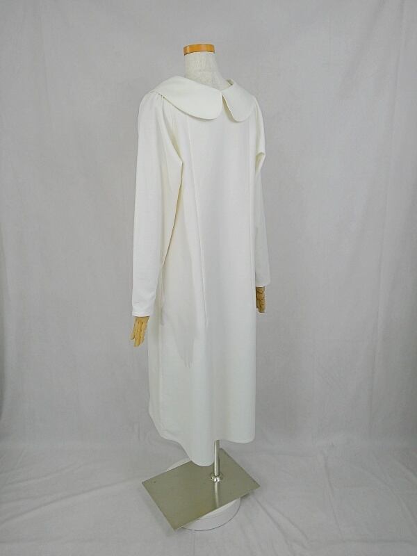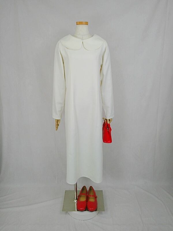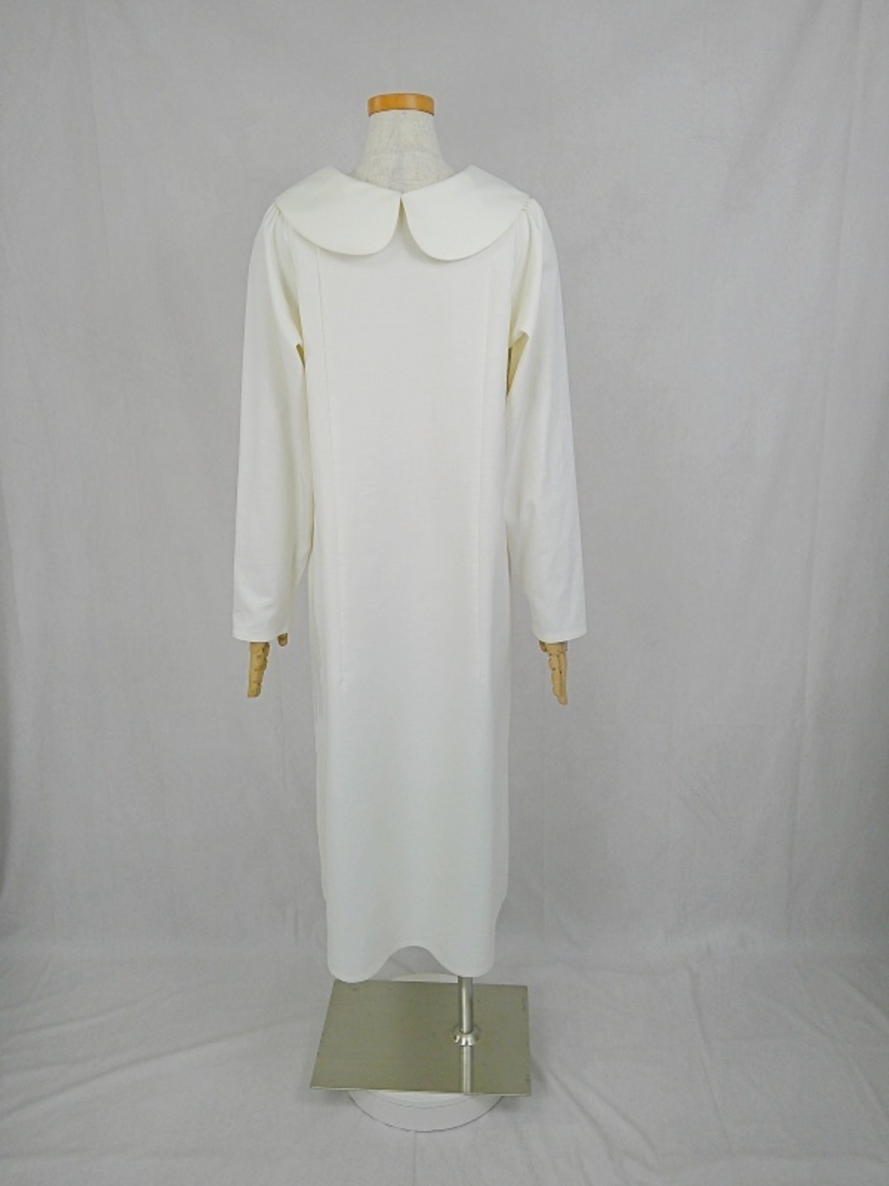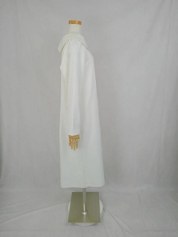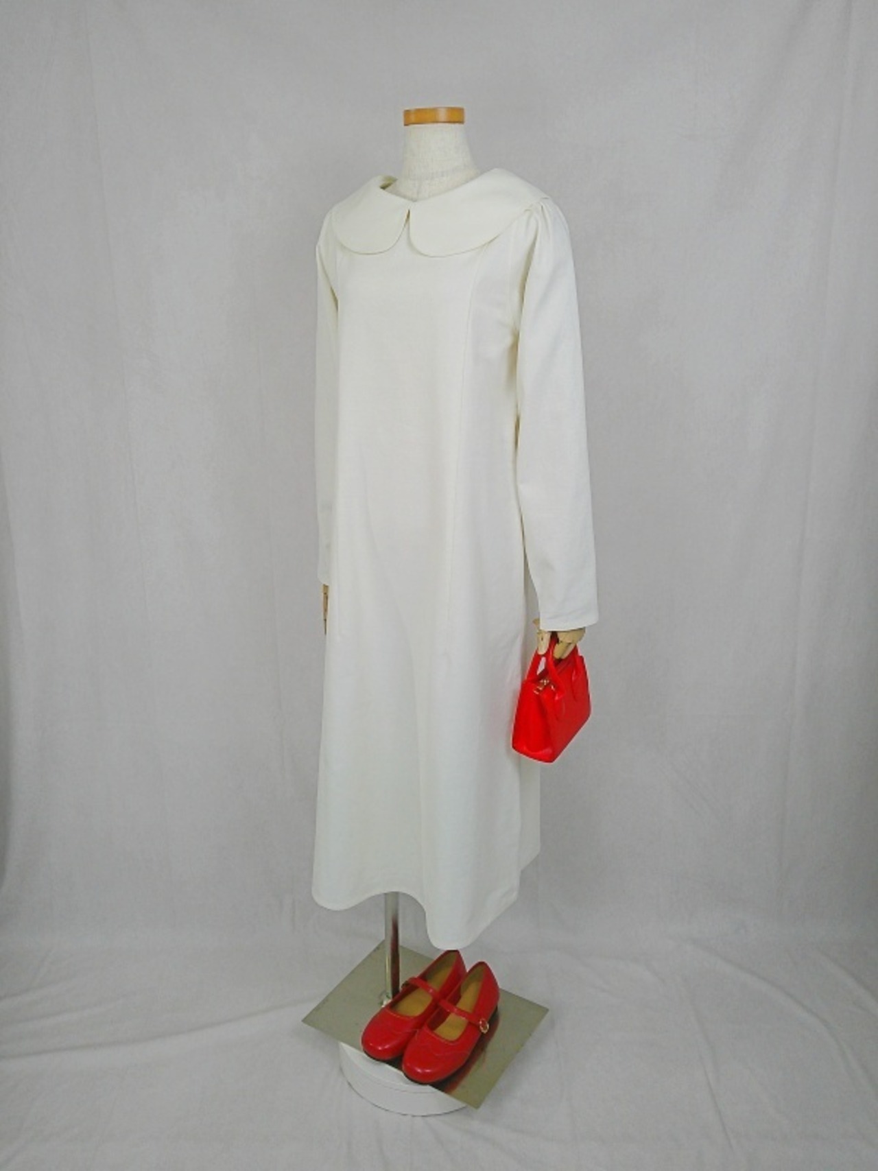 丸襟ワンピース 【ALP00000011】 ★着心地抜群のオーガニックコットンが気持ちいい、オフホワイトのミモレ丈丸襟ワンピース★ 手作り 一点物 快適 通勤 通学 ビジネス 締め付けない 国産 日本製 みもれ丈 オールシーズン コットン100%