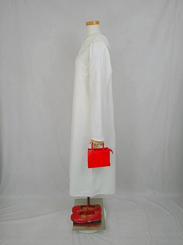 すっきりとしたAラインの前後に2ヶ所ずつ入れたタックが作る、プリンセスライン風の綺麗なシルエットを描くミモレ丈のワンピースは、着心地の良いオーガニックコットン素材感やオフホワイトの柔らかな色合いが、清楚な大人の雰囲気を演出しています。