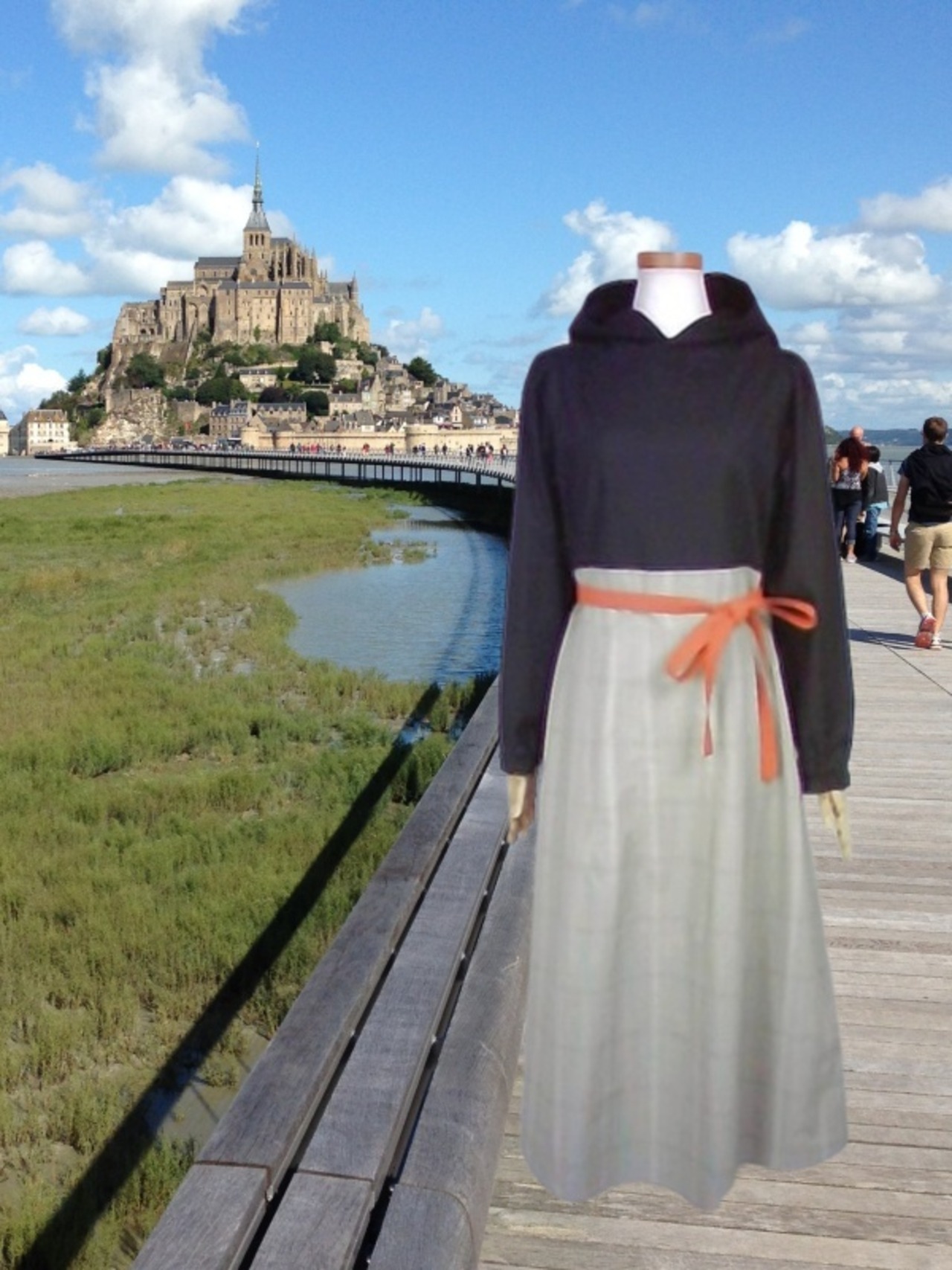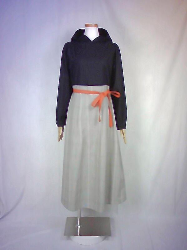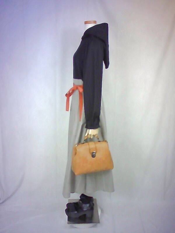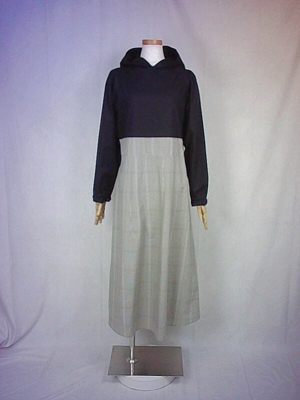 上質なスケア生地と西脇産の先染め生地で作りました、フードワンピースでございます。